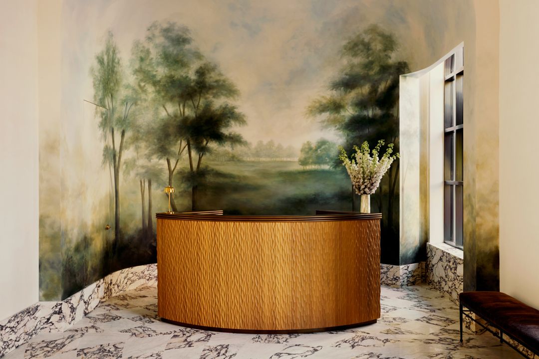 wanted the lobby to feel warm and welcoming, like an escape from the busy streets of New